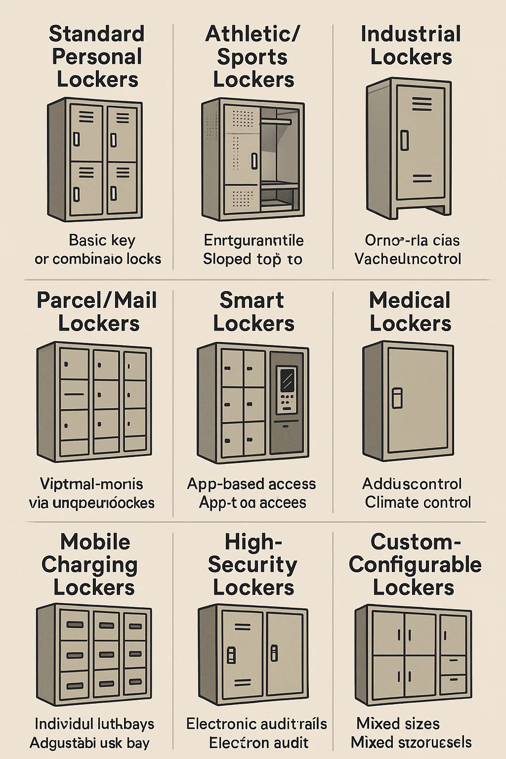 Skříňky jsou kategorizovány na základě kontextu designu, funkce a nasazení. Níže je rozpis běžných typů: